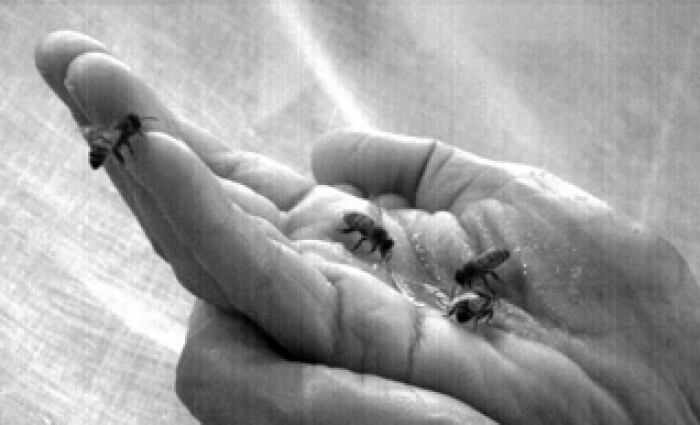 Captured at 250 fps, the video footage of the bees feeding from hands formed the source material for Host. It reveals not only the flying and navigational skills of the bee but also rare moments of nuanced intimacy within our fragile ecosystem.