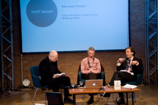 Wolfgang Hagen, Dieter Daniels and Claus Pias (left to right) at the bookpresentation of "Was waren Medien?"